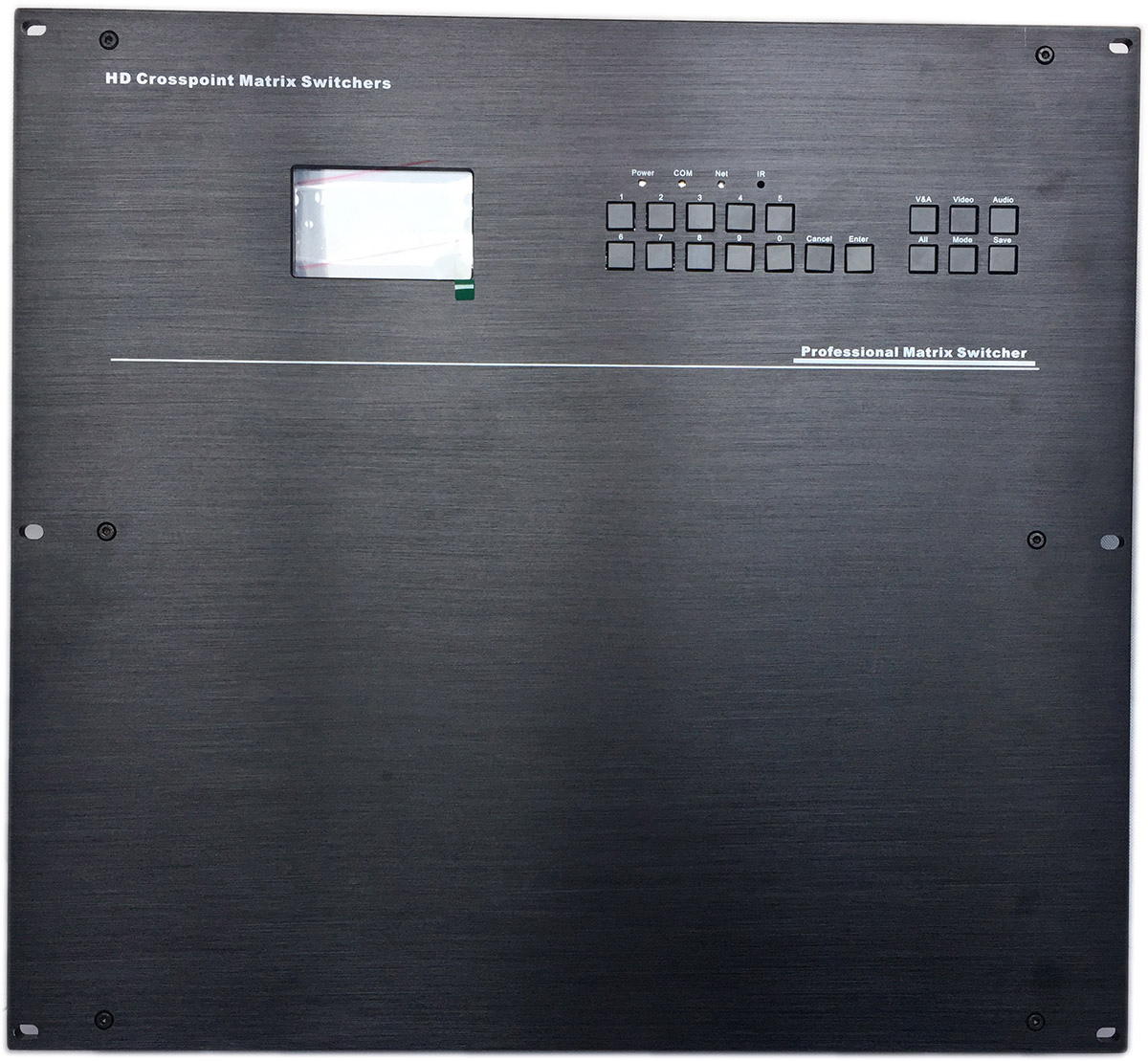 • 前面液晶屏支持编程,可自定义修改触摸屏按钮的名称及样式等;也可用于关联中控,作为中控的集中控制触摸屏。